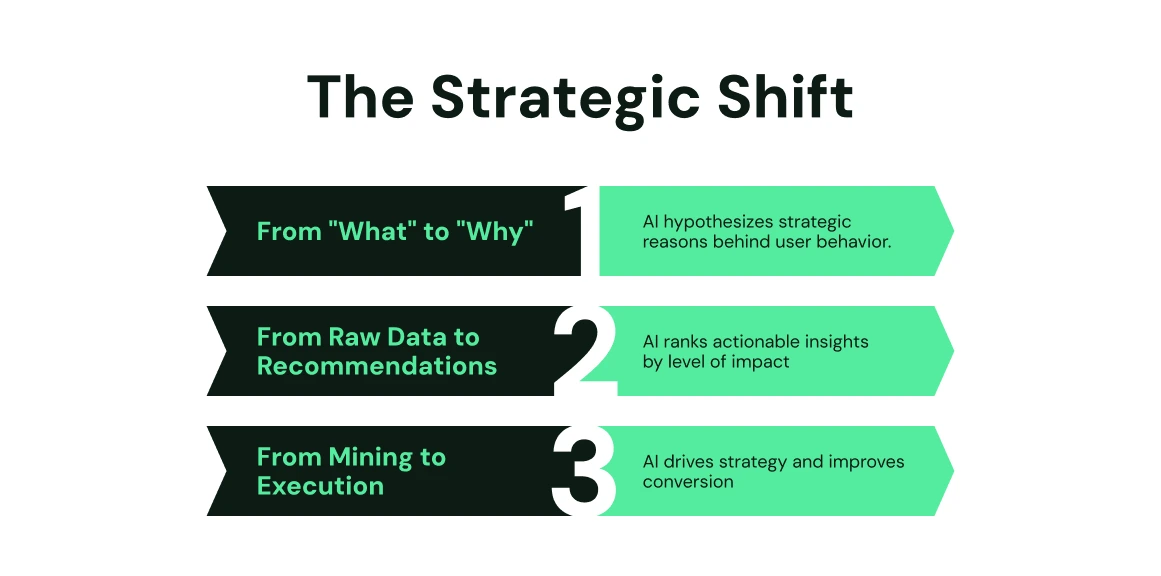 Instead of presenting raw data, AI surfaces prioritized, actionable recommendations. It doesn’t just give you a mountain of information; it hands you a short, strategic list of the biggest opportunities to improve conversion, ranked by potential impact.